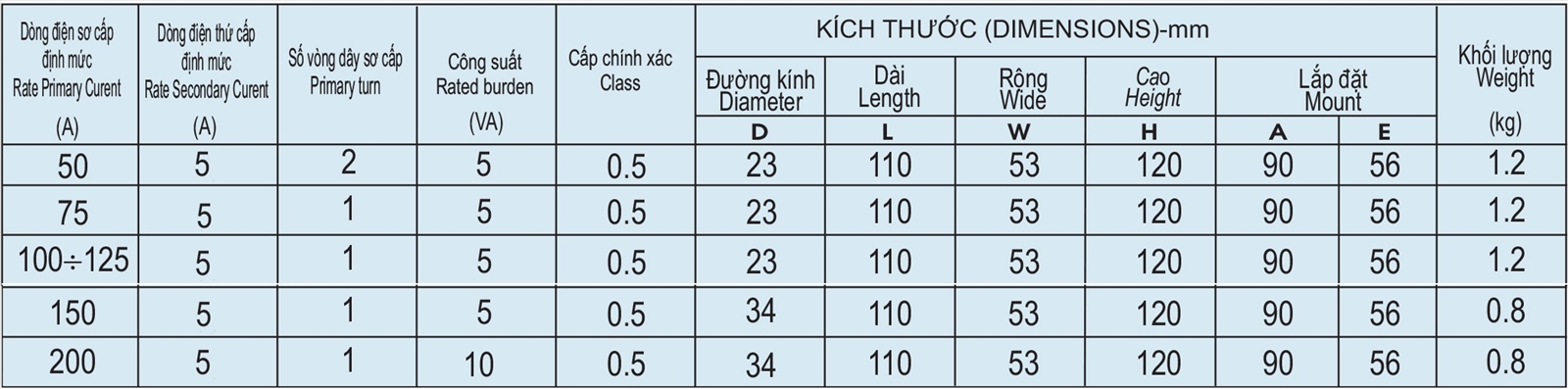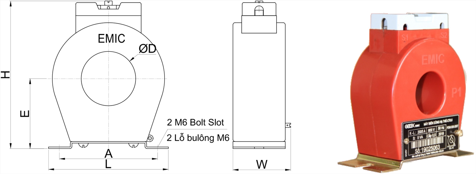 Cấu tạo biến dòng đo lường EMIC 100/5A: